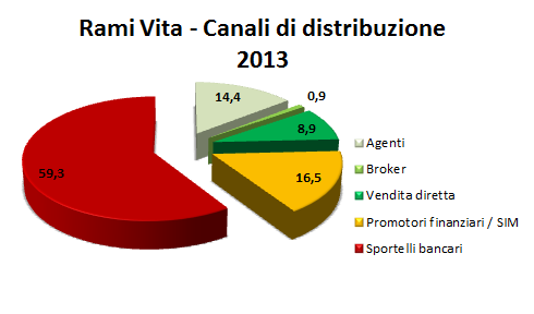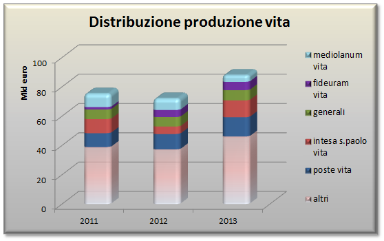 andamento dei principali collocatori rami vita: si può notare l’importante progresso di Poste e Intesa nel 2013