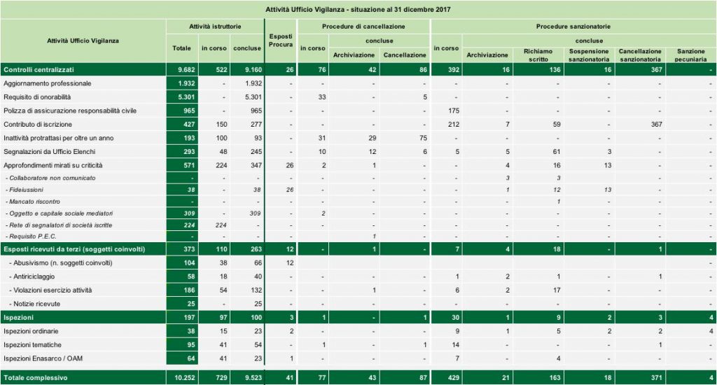 Il 2017 ha visto lo svolgimento di 10.252 controlli nei confronti degli iscritti, dai quali sono scaturite 1.006 procedure sanzionatorie: 569 si sono già concluse con l’applicazione di 550 provvedimenti sanzionatori, 19 con provvedimenti di archiviazione.
