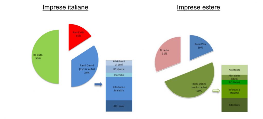 Per quanto riguarda le imprese italiane, il comparto nel quale si concentra il maggior numero di reclami è ancora quello della r.c.auto (50% del totale).